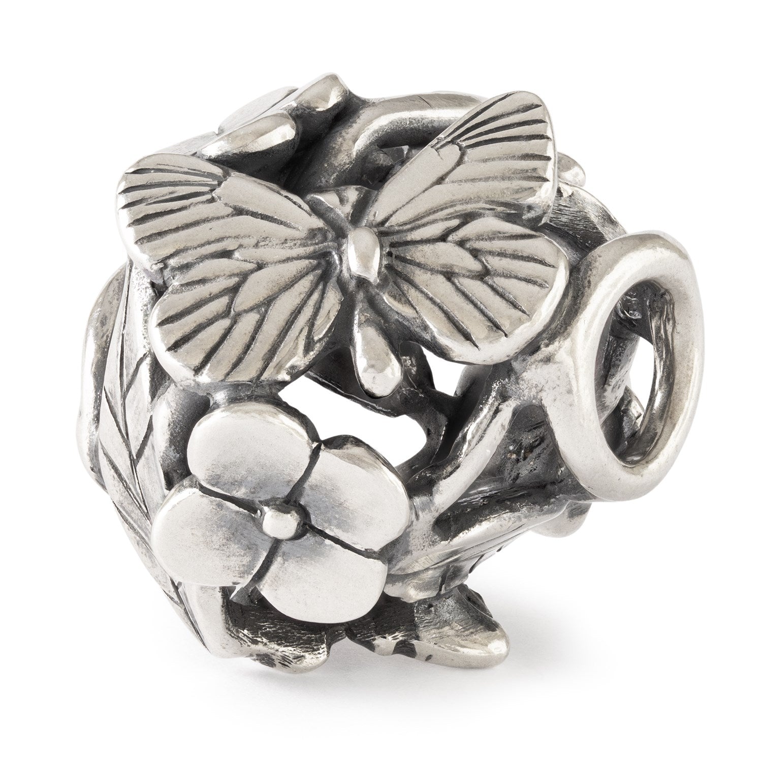 This bead features beautifully detailed silver butterflies, flowers, and leaves—woven together in a harmonious design that brings true joy to any nature lover.Pair it with your favorite nature-inspired beads—whether in glass, gemstone, or freshwater pearls—to create a harmonious design on bracelets or necklaces.