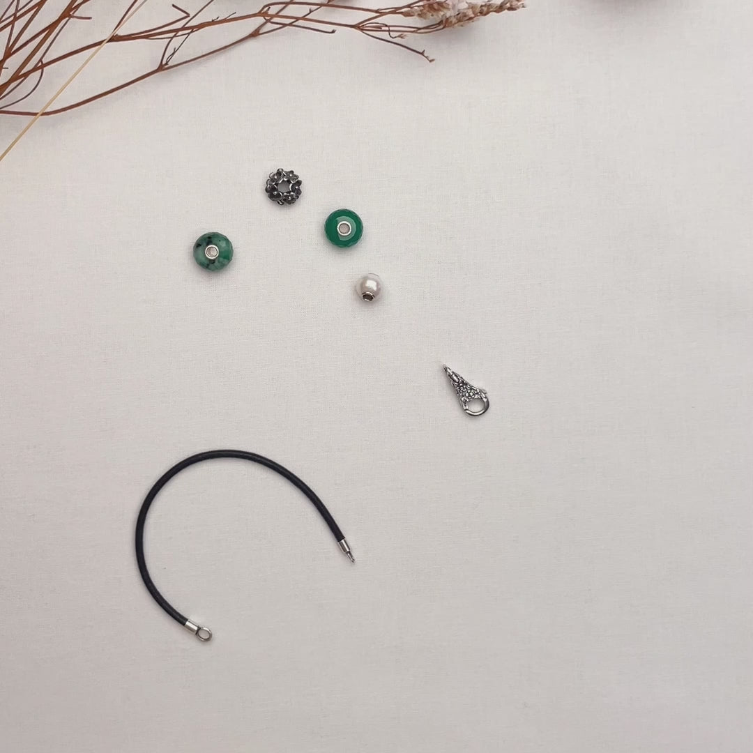 This black leather bracelet is a simple and flexible choice when you want to wear your favorite beads in a more relaxed and contemporary way.