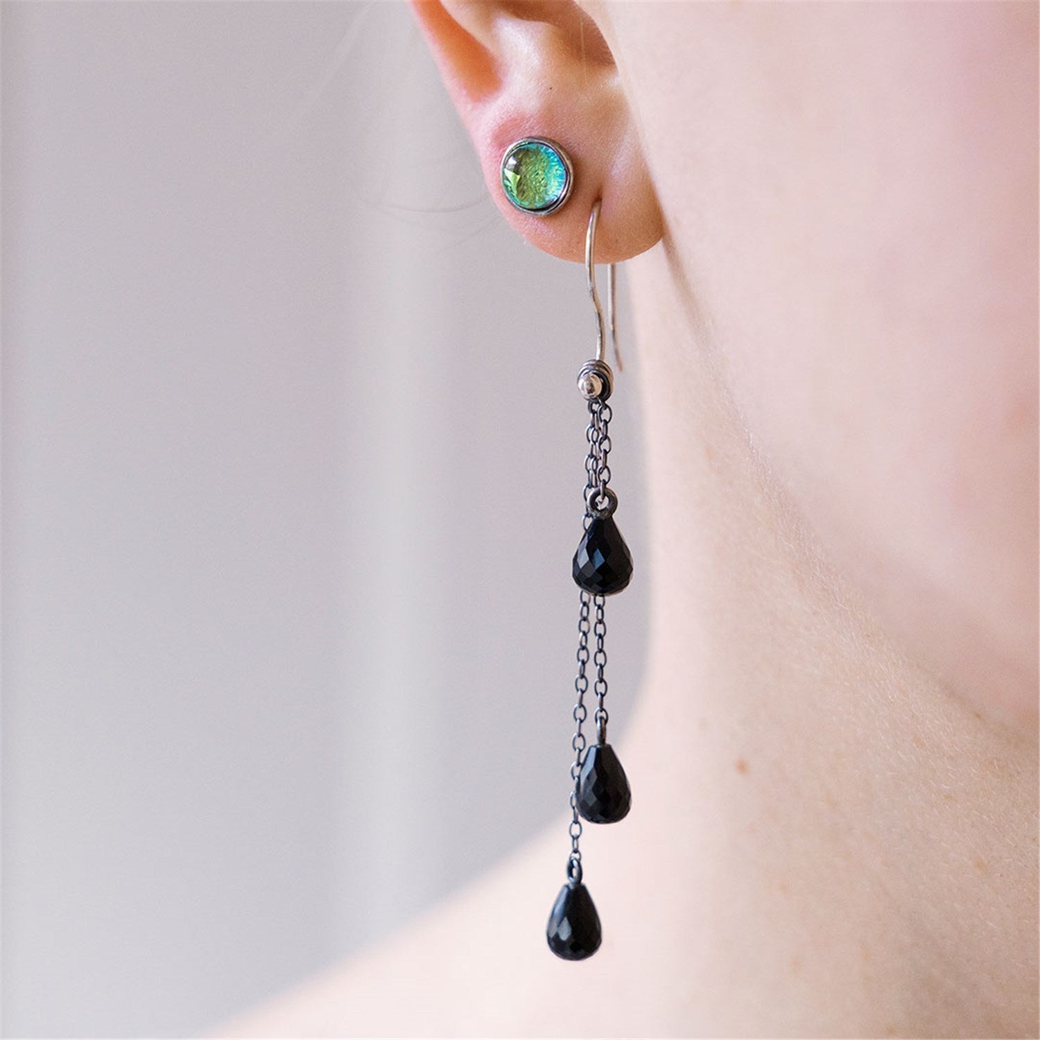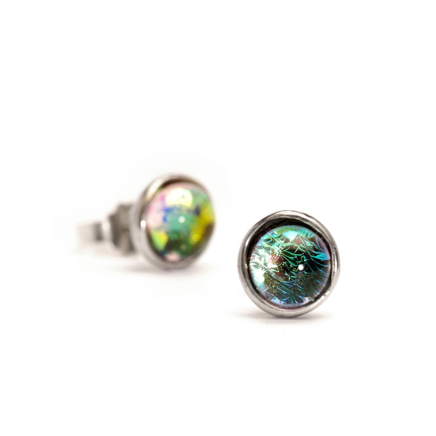 Please note: Each earring is handmade and no two dichroic glass earrings are ever completely alike. This goes for size, coloration and pattern. Your earrings may have slight variations from the earrings pictured.