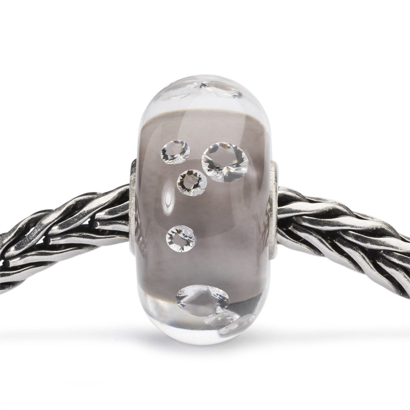 This Trollbeads Club exclusive bead is available only during November and December. A stunning diamond bead, lined with grey glass and set with 13 shimmering cubic zirconia, Nordic Twilight captures the quiet beauty of twilight skies in the Nordic winter.